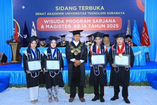 Pada hari Kamis, 30 Oktober 2025, Universitas Teknologi Surabaya (UTS) mengadakan wisuda Ke XVIII tahun 2025 untuk program Magister Manajemen dan program sarjana di Gedung Aula Universitas Teknologi Surabaya, Jalan Balongsari Praja V No. 1 Surabaya. Sebanyak 37 lulusan dari jenjang sarjana dan magister resmi dikukuhkan dikukuhkan dalam prosesi yang berlangsung meriah sekaligus khidmat.