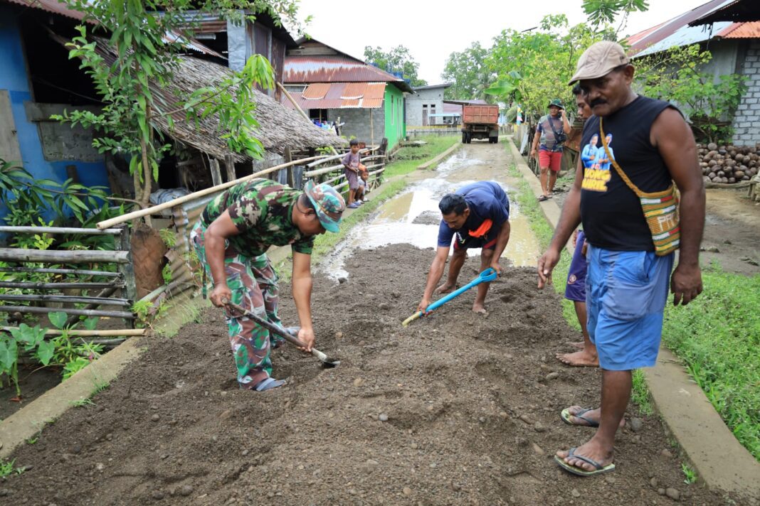 Wujud Kepedulian, Satgas TMMD dan Warga Kompak Perbaiki Jalan Desa